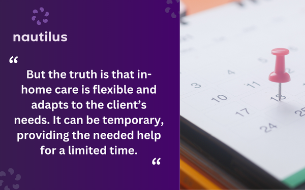 But the truth is that in-home care is flexible and adapts to the client’s needs. It can be temporary, providing the needed help for a limited time.